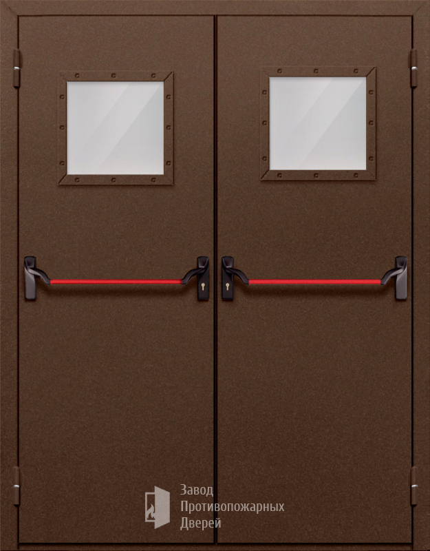 Маркировка Противопожарная Двупольная дверь с квадратным стеклом ДПМ-02-EIW60 с антипаникой