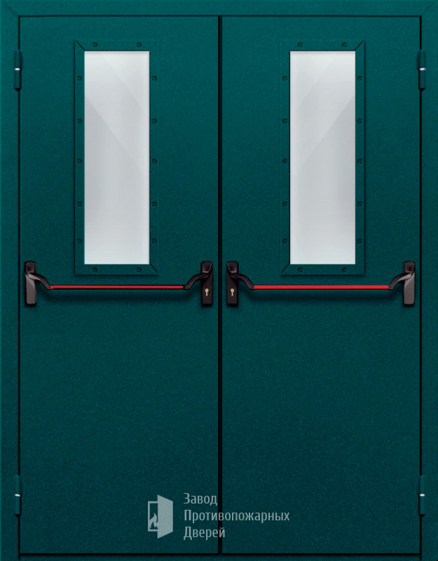 Маркировка Противопожарная Двупольная дверь с прямоугольным стеклом ДПМ-02-EIW90 с антипаникой