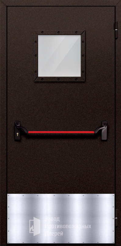 Противопожарная Однопольная дверь с квадратным стеклом ДПМ-01-EIW90 с антипаникой |