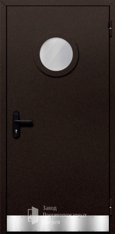 Маркировка Противопожарная Однопольная дверь с круглым стеклом ДПМ-01-EIW30 с антипаникой
