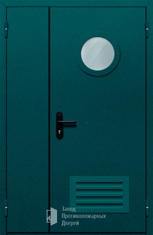 Маркировка Противопожарная Полуторная дверь с круглым стеклом ДПМ-02-EIW60 с решеткой