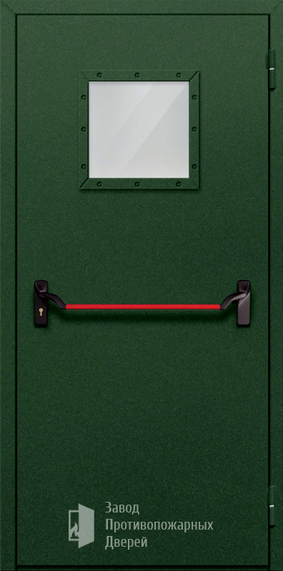Маркировка Противопожарная Однопольная дверь с квадратным стеклом ДПМ-01-EIW60 с антипаникой